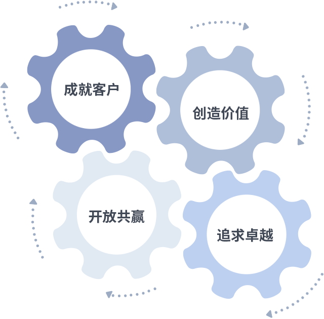 成就客户是一切决策的出发点,创造价值是衡量所有工作的标准,追求卓越是米兰·(milan)做事做人的态度,开放共赢是米兰·(milan)的格局也是最终的结果。价值观的齿轮环环相扣,推动着组织里的每个人不断向前。